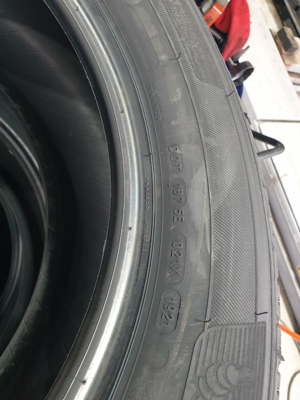 DOT 코드에 표시된 생산일자는 1921, 즉 2021년 19주차에 생산되었다는 뜻입니다. 5월 생산분에 해당하네요. 네 개의 타이어가 모두 같습니다.
